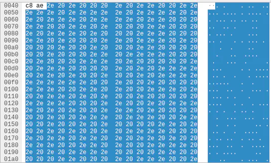 Opening a packet we can see that there seem to be only spaces and dots that are sent.