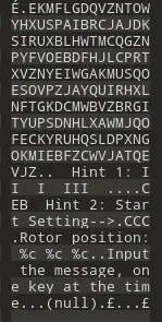 To decrypt the flag, we need to change the initial rotor positions from CCC to BBB. Opening FAGGIN.COM in a hex editor, we can find the following hints.