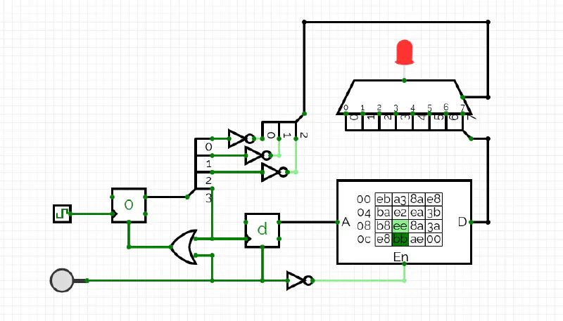 After filling the ROM with this data we end up with the following circuit.
