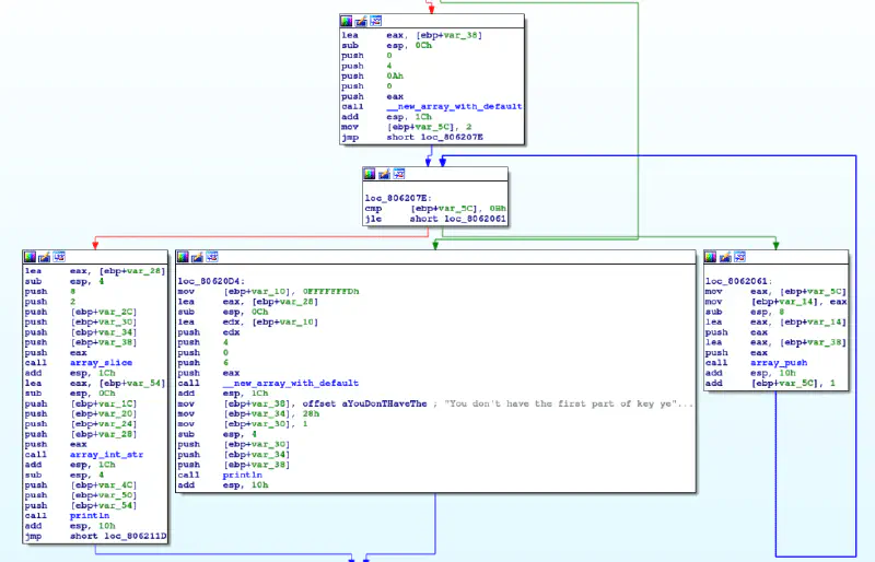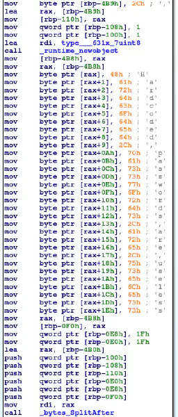 So the init function decodes the data stored at check_password and stores the decoded function in the memory. Lets write a script to decode the check_password function and dump it to a binary file for disassembly.