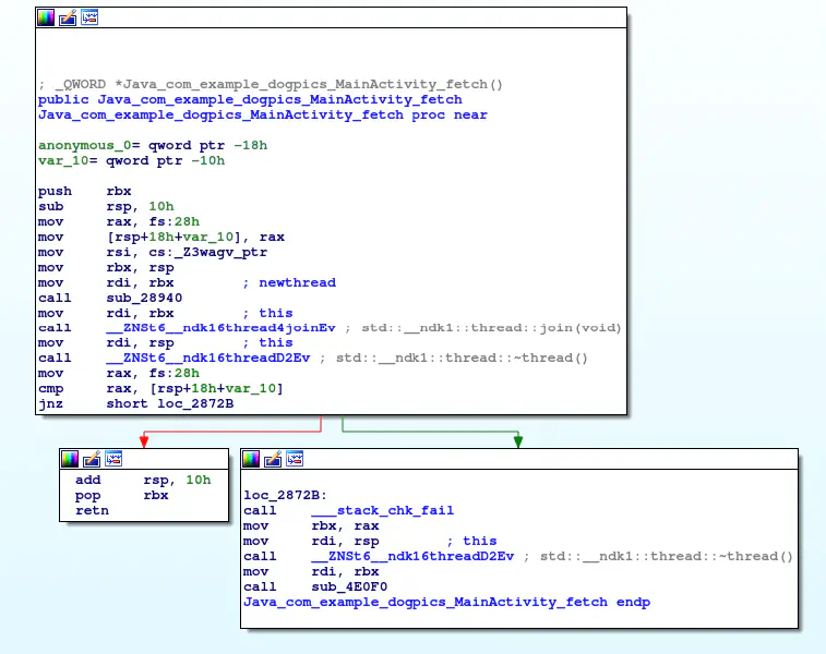 So we can assume that this function downloads an encrypted library and loads it.