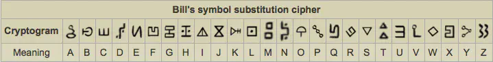 This is a cipher from the TV-series Gravity Falls called Bill’s symbol substitution cipher.