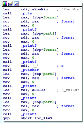 .text:000000000000130D mov word ptr [rbp+part1], '{'