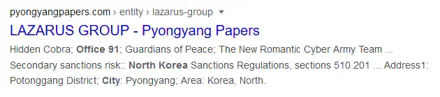 So Office 91 is a North Korean group. Lets change the search query to north korea “Office 91” city and take a look at the results.